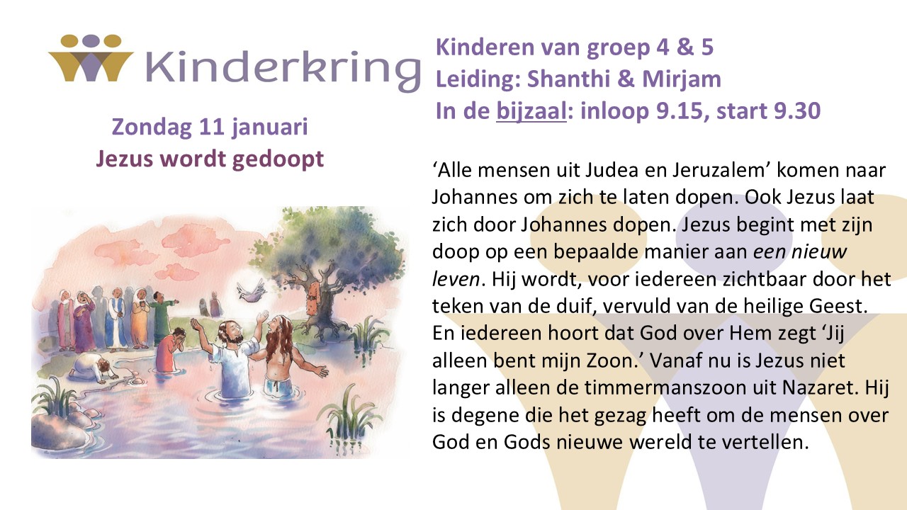 Komende zondag willen we wel graag met alle kinderen van de kinderkring na de dienst een lied oefenen die we gaan zingen tijdens de dienst met Kerst. We hopen dat iedereen kan komen/blijven om even te oefenen, hoe meer kinderen, hoe meer volume!